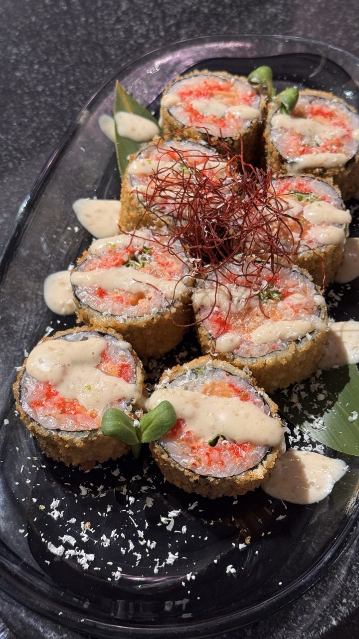 Количество товара Ролл темпура с копченым лососем и соусом спайси