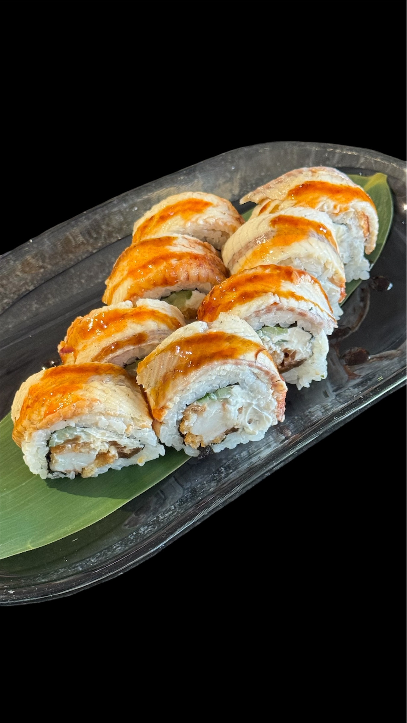 Рис, нори, сыр креметте, угорь, креветка панко , тыква канпио, огурец. 265гр