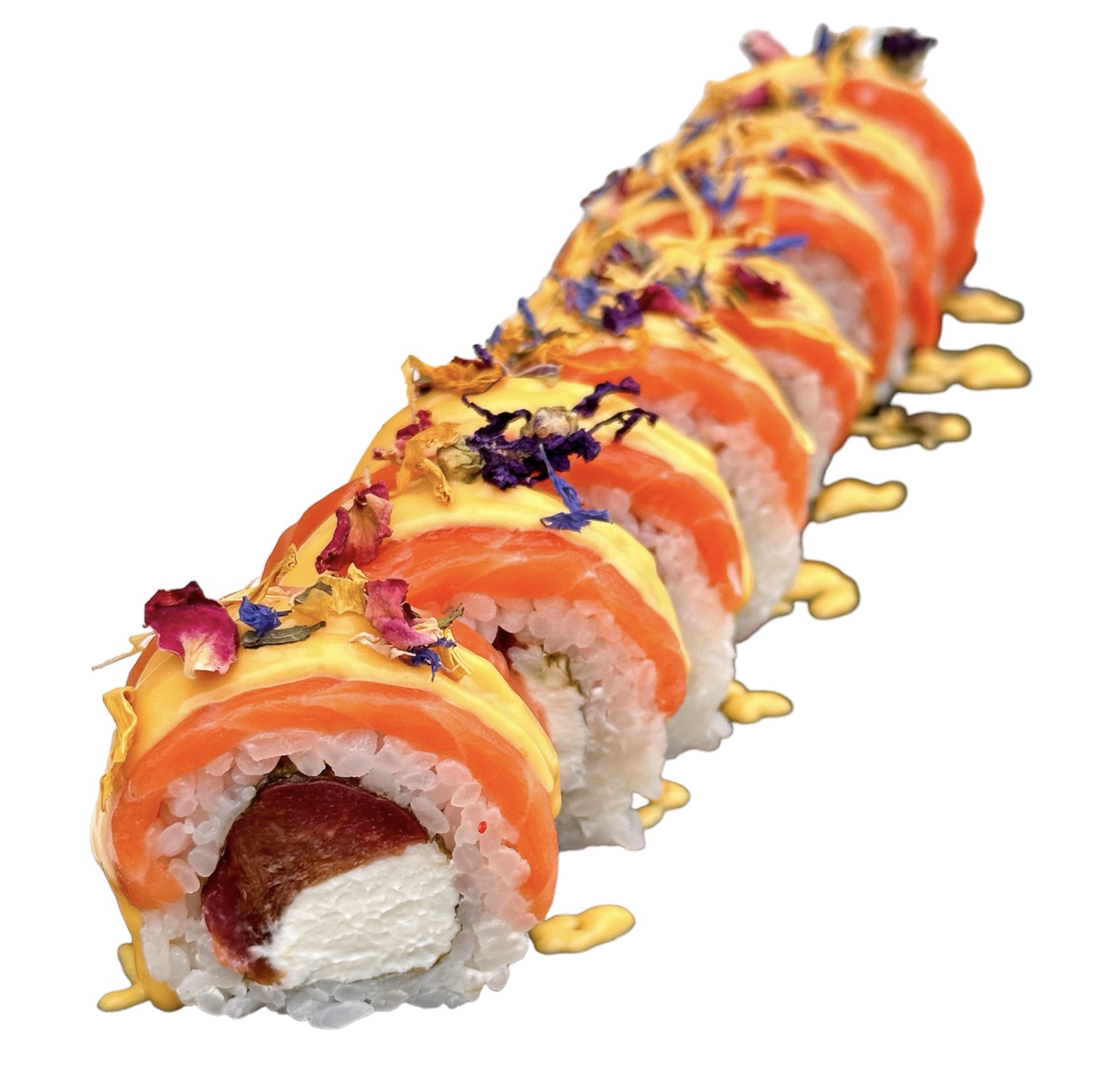 Ролл с маринованной сливой лососем и соусом манго