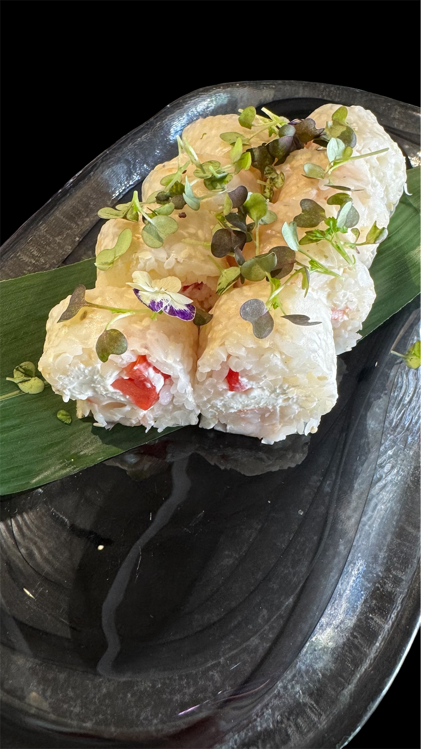 Рисовая бумага, рис, креветка, сыр креметте, помидор черри, кунжут.195гр